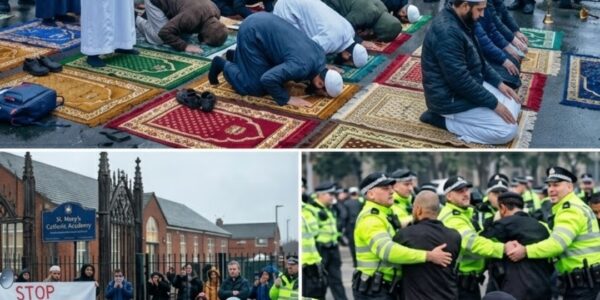 “NOT ON OUR GROUND!” — CHRISTIANS PHYSICALLY REMOVE MUSLIMS PRAYING OUTSIDE SCHOOL AS TENSIONS EXPLODE ACROSS EUROPE Tension reached a boiling point outside a Catholic school in Europe when a group of Muslims arrived and began performing loud prayers directly…