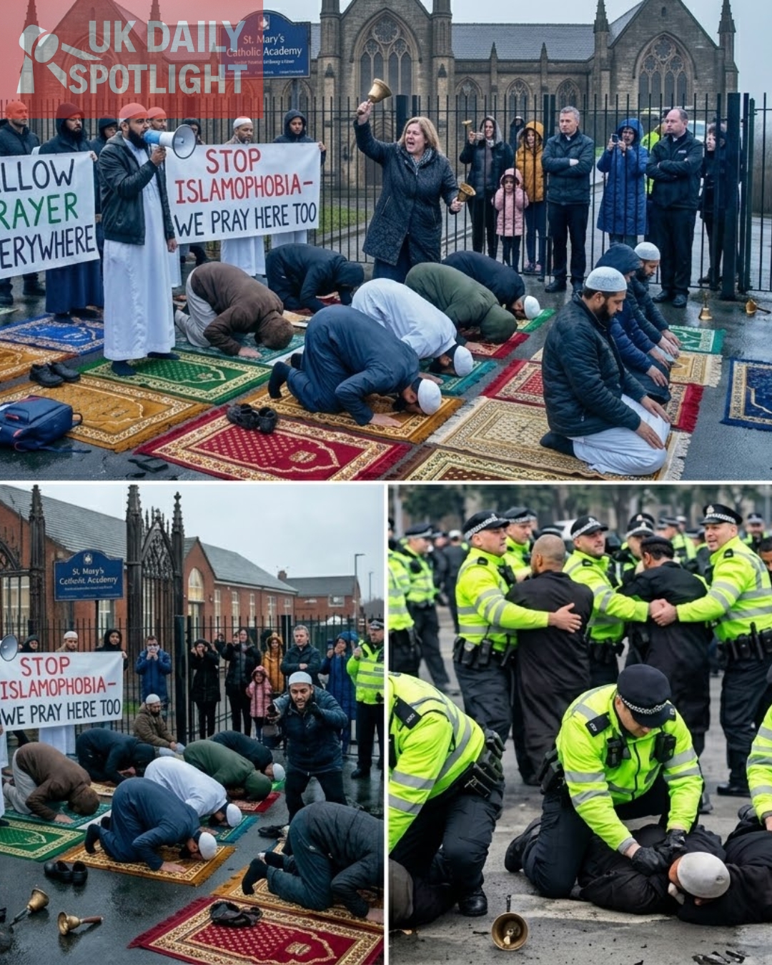 CATHOLIC SCHOOL UNDER SIEGE — CHRISTIANS RING BELLS AND DRIVE AWAY MUSLIM PRAYER GROUP IN BOLD STANDOFF
