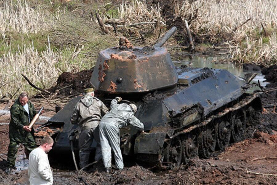 Der T-34 galt als Rückgrat der Roten Armee und war für seine Robustheit und Beweglichkeit gefürchtet. In diesem Fall jedoch wurde er zum stummen Zeugen einer vergessenen Tragödie. Die sterblichen Überreste der Soldaten befanden sich noch im Inneren – ein ergreifender Moment für die Bergungskräfte, die dem Wrack mit Respekt begegneten.